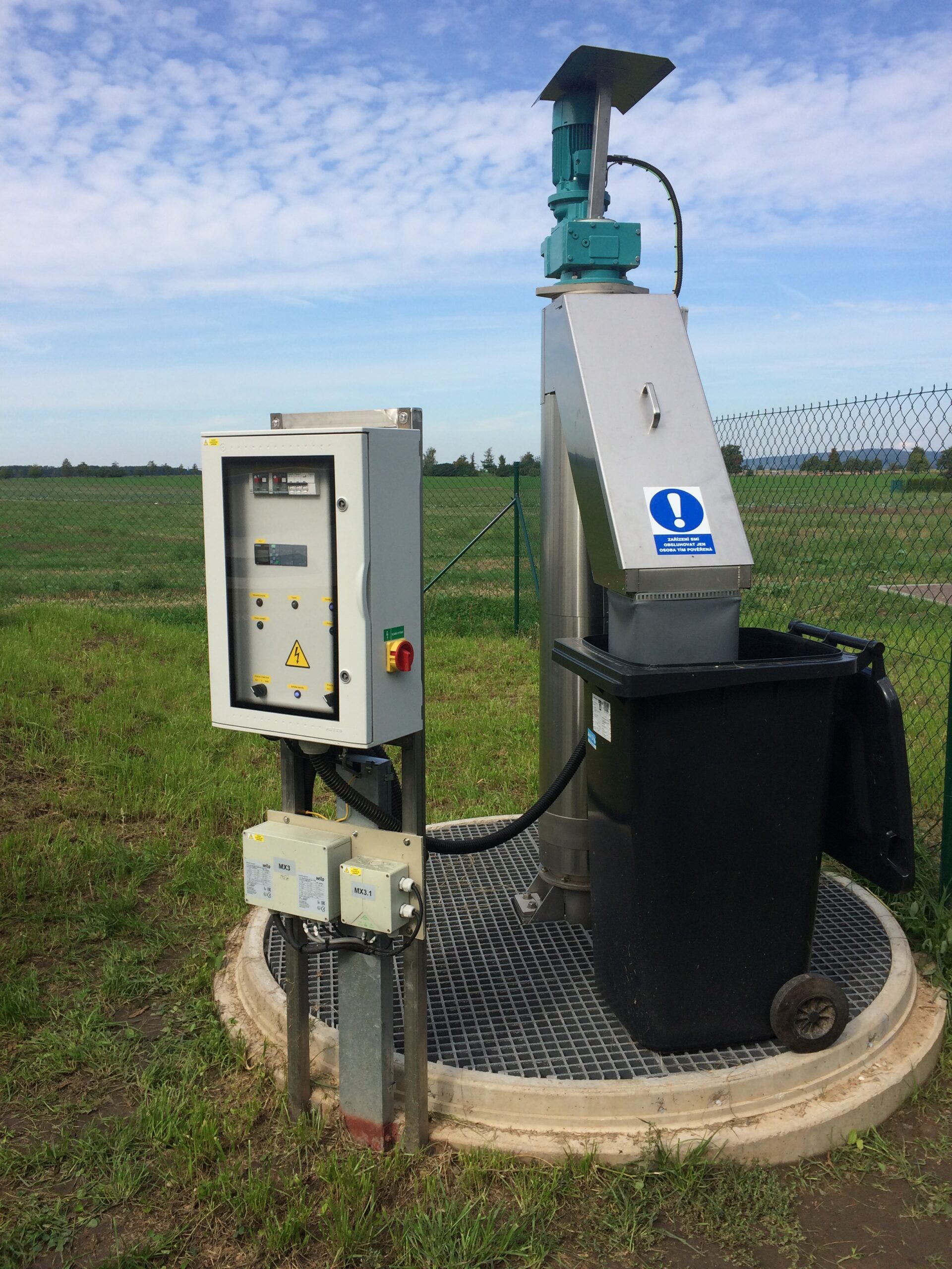 Automatický chod česlí zajišťuje hladinová sonda, která dává impuls pro čištění prutového koše, v kombinaci s časovým spínáním.