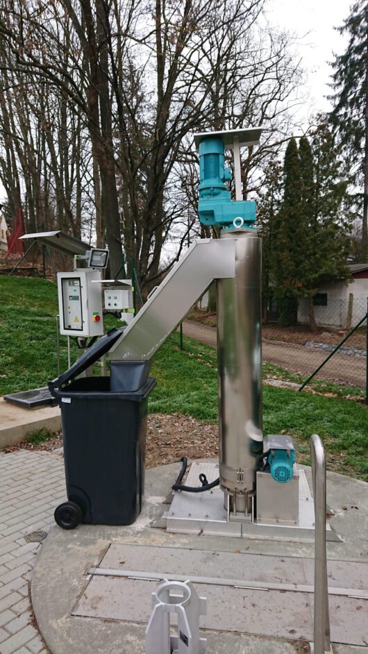 - shrabky se zachytávají na prutech česlí a až poté jsou dopravovány k šroubovému dopravníku – neucpává se filtrační koš